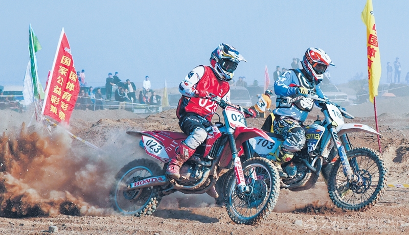 10月19日,车手在越野场地赛中激烈角逐。当日,2025新疆·吐鲁番第14届环艾丁湖摩托车拉力赛开赛。比赛项目涵盖越野场地赛及拉力赛两大类别,吸引了来自全国各地的27支车队、103名选手参赛。□刘健摄