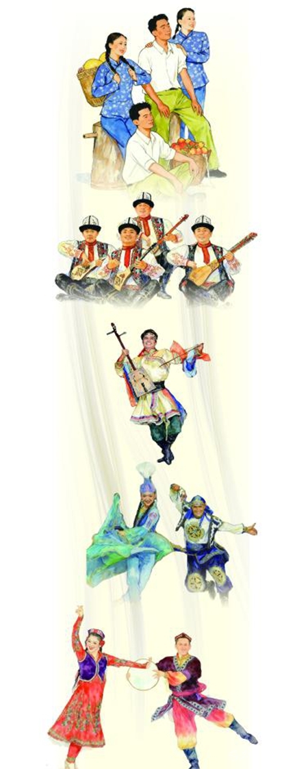 新疆自古以来就是多民族聚居、多种宗教并存、多元文化荟萃之地,这里拥有奇谲壮丽的自然风光,孕育出灿烂多彩的民族文化。在独特的自然与人文环境中,新疆形成了许多具有地域文化特征的共同体意象。从凯歌进新疆到兵团精神,再到“像石榴籽一样紧紧抱在一起”,时代精神与经济社会发展有机交融,成为记录70年来新疆现代化发展的生动注脚,也在此次《美丽新疆》晚会中得到了艺术化呈现。