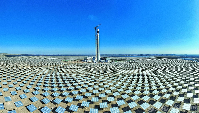 正在建设中的博州10万千瓦储热型光热配建90万千瓦新能源项目现场(10月20日摄)。近年来,博州加快推进新能源项目建设,新能源装机占比持续攀升。 □于苏甫·艾尼摄