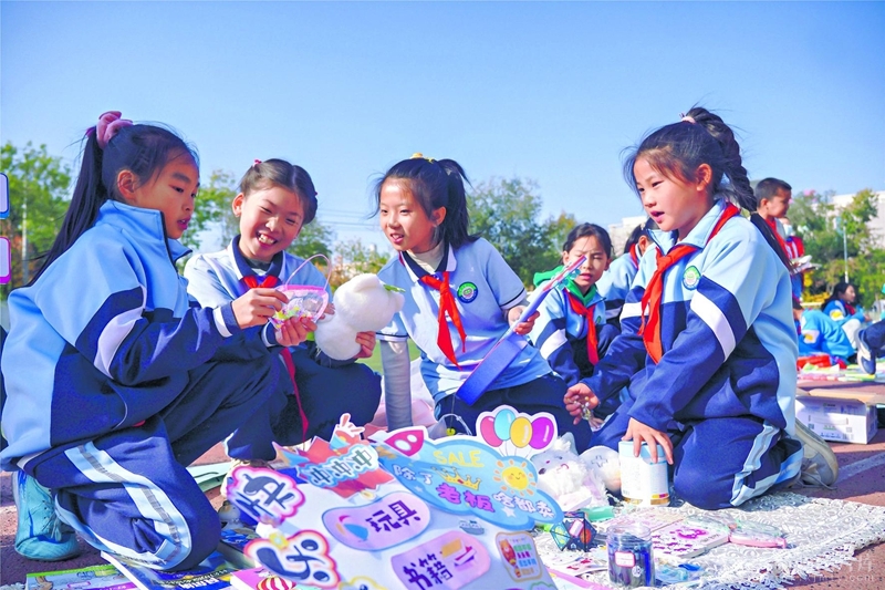 10月17日,学生在挑选物品。为丰富校园生活,培养学生勤俭节约、绿色环保的生活习惯,当天下午,昌吉市第二小学举办了以“跳蚤小市场 童趣大收获”为主题的校园跳蚤市场活动,吸引了众多学生参与。 □杨斌摄