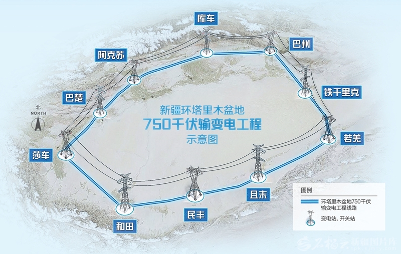 为破解这一难题,新疆2010年启动环塔工程建设,分9个阶段推进巴州—库车、库车—阿克苏—巴楚、和田—民丰—且末—若羌等9个750千伏输变电工程。