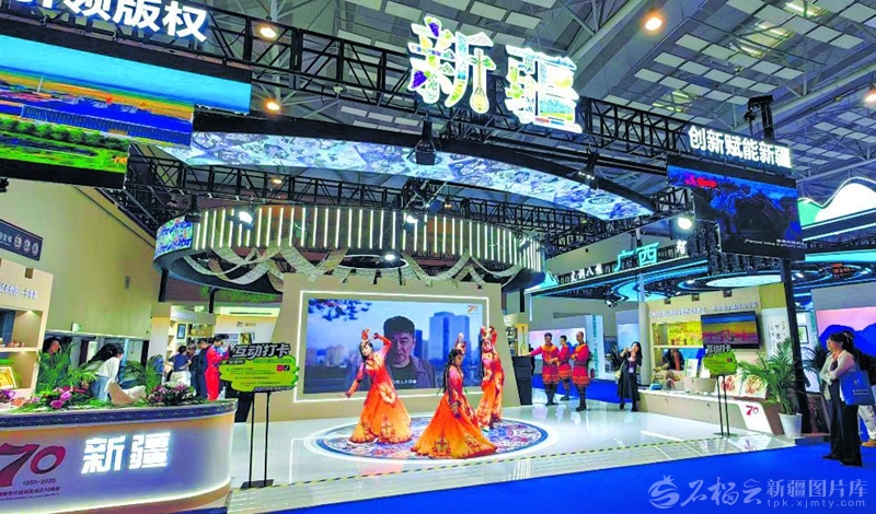 10月16日至18日,第十届中国国际版权博览会(以下简称“版博会”)在青岛举办。新疆展区以“铸牢中华民族共同体意识”为主题,携410件涵盖书籍、音像制品、书法作品、绘画、剪纸、摄影作品、工艺品、文创产品、服饰、乐器、刺绣等类别的版权精品精彩亮相。这些精品并非单纯的文化展品,而是以版权保护为支撑、以文化润疆为内核的活态载体。通过“静态展示+动态展演+互动体验”的立体呈现模式,将自治区成立70年来的版权实践浓缩成一幅兼具历史厚度与现代活力的文化画卷。