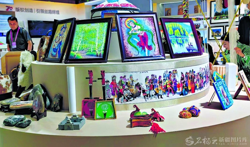 展区里的文创产品则是民族文化交融创新的“微观课堂”。十余件民族乐器的骨雕摆件、艾德莱斯花纹转转杯、龟兹壁画灯等将传统民族符号与现代设计理念结合,让传统走进现代生活……这些文创产品均已完成版权登记,既确保了“民族元素+现代创意”的独特性,也让各民族文化在创新中相互借鉴。现场展示的呆萌雪豹小手办总引得观众拿起来细细端详,其设计中既有新疆地域特色,又融入了大众喜爱的潮流元素,正是不同文化元素交融共生的产物,在版权保护下,这些“你中有我、我中有你”的文化成果,成为推动各民族情感共鸣的重要载体。
