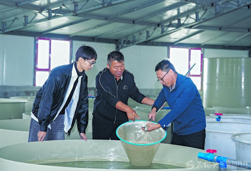 10月30日,援疆专家在乌苏市头台乡汪家庄子村给养殖户分享准噶尔雅罗鱼人工繁育技术。 近年来,乌苏市积极发挥“组团式”援疆人才资源优势,通过精准帮扶、“传帮带”培养,建立“援疆专家+本地企业+养殖户”协作机制,实现生态保护与养殖户增收双赢。□李仁锡摄