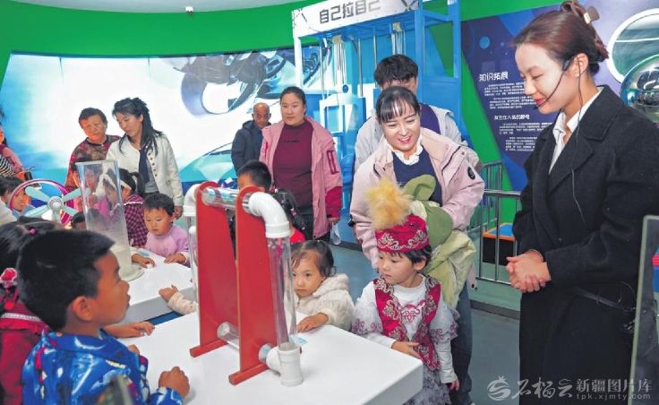 10月31日,讲解员为小朋友们讲解科普设备。当天,乌苏市民利用周末时光带着孩子来到乌苏市科技馆,观看丰富有趣的科普演示装置并参加各类科普小活动,零距离体验科技魅力,感受科学的神奇。□李仁锡摄