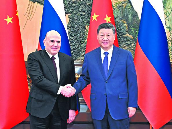 11月4日上午,国家主席习近平在北京人民大会堂会见俄罗斯总理米舒斯京。□新华社记者李响摄