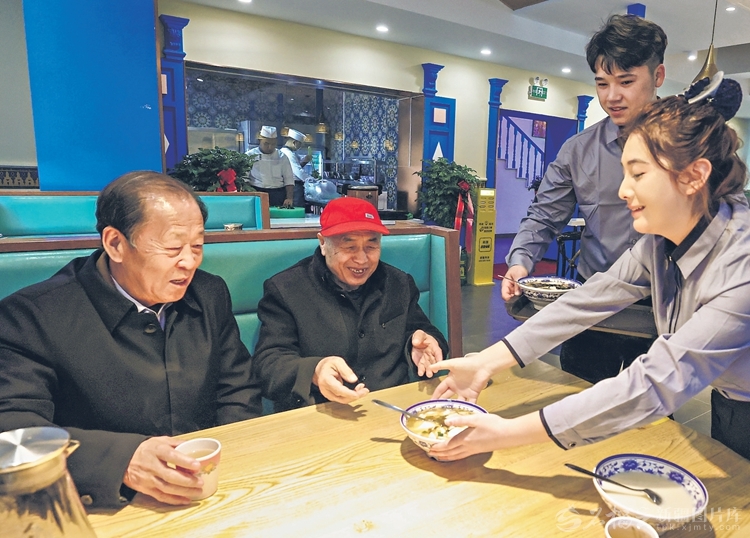 中午,暖阳斜照在乌鲁木齐高新技术产业开发区(新市区)喀什东路街道乌东站社区本味上品餐馆门口,三三两两的老人刷脸进门,熟稔地和柜台后的餐馆负责人刘果打招呼。