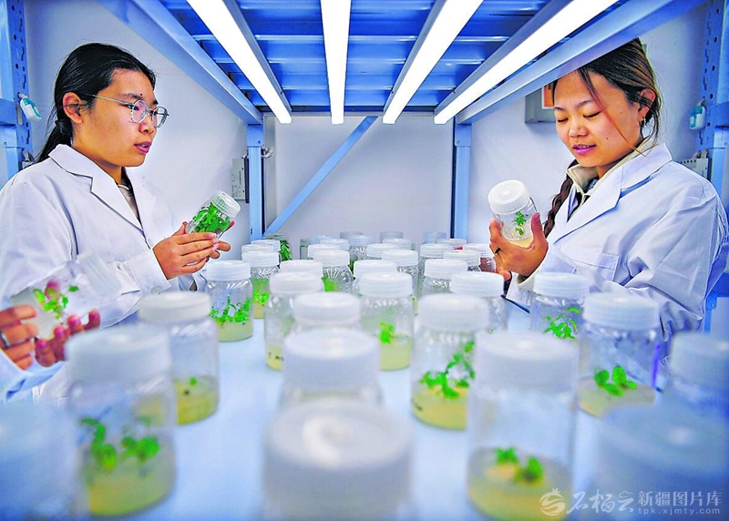 10月27日,麦盖提县红枣产业研究院实验室工作人员查看培育的红枣苗长势。近年来,麦盖提县以科技创新为核心引擎,深耕红枣产业升级,成功蹚出一条兼具地域特色与竞争力的高质量发展之路,让红枣产业成为富民兴县的重要支撑。□石榴云/新疆日报记者约提克尔·尼加提摄