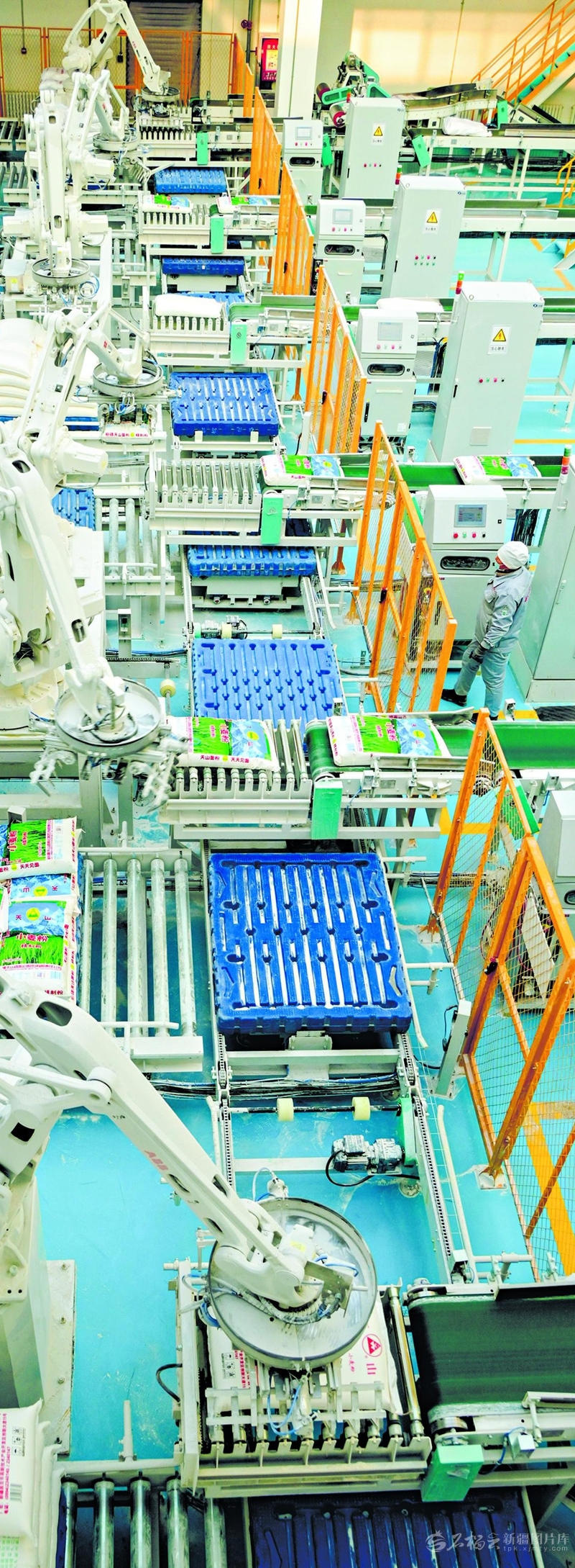 位于昌吉国家高新技术产业开发区的新疆天山面粉(集团)有限责任公司智能化生产车间(11月2日摄)。该公司日处理小麦粉1300吨,产品销往全国各地。 □陶维明摄