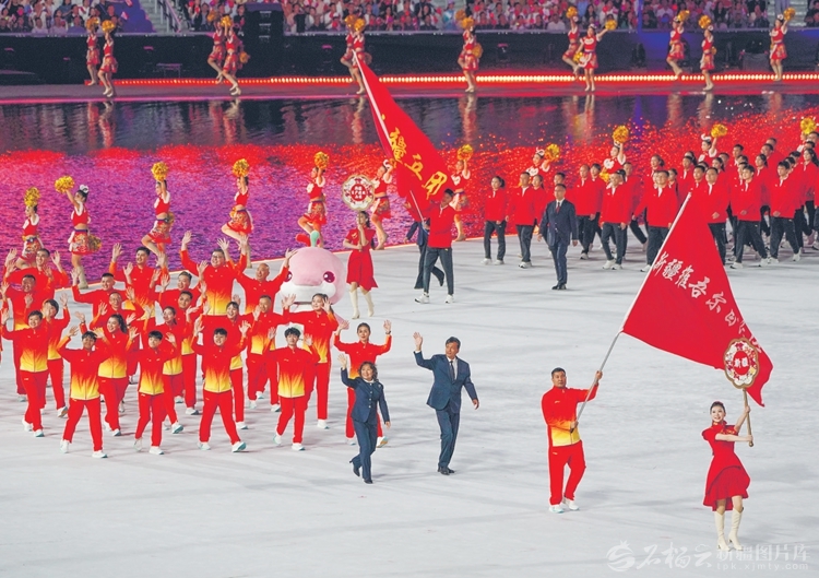 开幕式上,新疆拳击名将麦麦提图尔孙·琼作为新疆代表团旗手,步伐坚定。这份沉稳源自他多次征战全运会3次夺魁的积淀。从2008年北京奥运会走在中国代表团队伍中姚明身后的青年,到今天作为新疆代表团旗手,他紧握旗杆的手格外有力:“新一代新疆拳击人的使命,我们要稳稳扛起。”