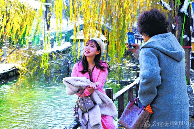 11月7日,市民在乌鲁木齐市水磨沟公园拍照。当天,众多市民来到户外游玩、赏雪景。□孙振嵩摄