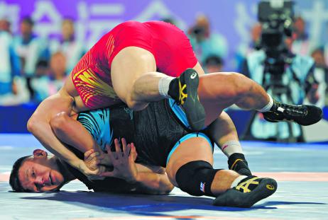 本报清远11月11日讯 石榴云/新疆日报记者王晶晶报道:11月11日下午,第十五届全运会摔跤比赛男子自由式74公斤级的比赛中,新疆选手阿黑由·吐尔逊一路过关斩将闯入决赛,获得银牌。