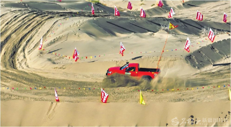 11月8日,参赛选手在博湖县艾勒逊乌拉沙漠里驾车驰骋。□年磊摄