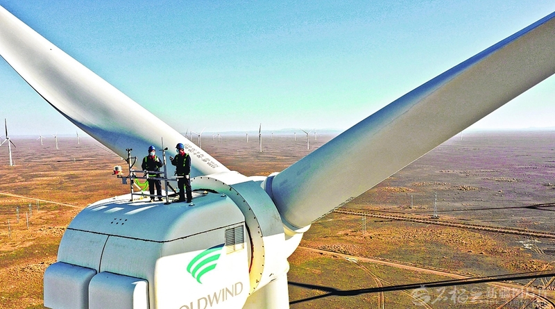 11月11日,深圳能源集团股份有限公司新疆分公司木垒200兆瓦风力发电场员工巡检风机。目前,木垒工业园区入驻风电企业63家,总装机容量2000万千瓦,是“疆电东送”主要的风电新能源产区之一。 □周游摄
