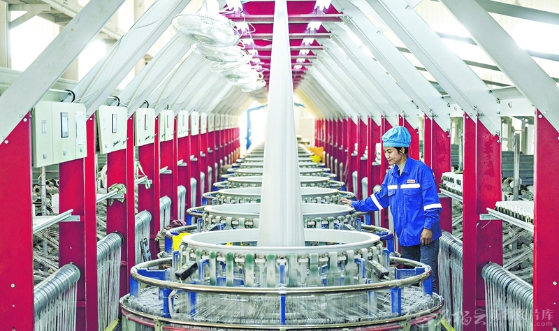 11月12日,工人在位于昌吉国家高新技术产业开发区的新疆宜化塑业有限公司生产车间作业。该公司主要生产化工产品包装袋,产品销往全疆各地及西北地区。今年公司投资500万元推进数字化改造,对设备进行更新升级,产能较之前提升20%。 □何龙摄