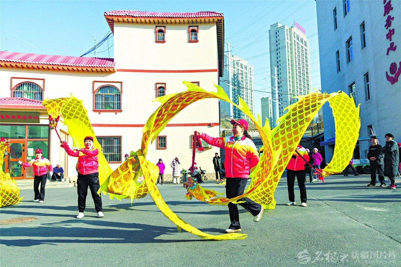 11月16日,市民在乌鲁木齐市天山区幸福路街道养老服务中心挥舞彩带龙健身,乐享冬日美好时光。□孙振嵩摄