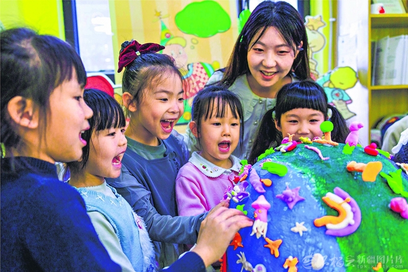 11月19日,在乌鲁木齐经济技术开发区(头屯河区)高铁街道锦霞社区贝贝星茗苑幼儿园,小朋友正在学习科技和环保知识。当天,该社区组织辖区小朋友们开展绘画、唱歌、做手工、玩趣味游戏等活动。 □孙振嵩摄