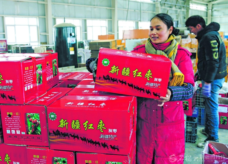 11月18日,走进巴楚县某红枣加工企业,现代化生产车间里一体化生产线上,分级后的红枣依次进入清洗、分层控温烘烤、紫外线杀菌、光电拣选等多道精细工序。工人们熟练地完成装箱、称重、打包等操作,一箱箱贴有“巴楚红枣”标识的标准化产品整齐码放,即将搭乘物流快车发往山东、广东、河北等全国各地。