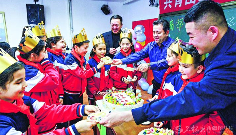 11月20日,乌鲁木齐市第九小学老师为孩子们送生日蛋糕。当日,该小学开展了“爱心生日会”活动,为50名少年儿童过集体生日,孩子们在欢笑中度过了难忘的一天。 □孙振嵩摄