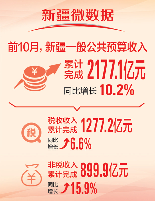 前10月新疆一般公共预算收入超2177亿元