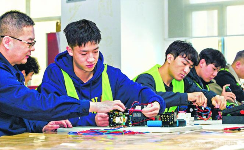 11月24日,在乌鲁木齐市西域职业培训学校,学员进行电工作业实操。当日,新华南路街道西河坝前街社区组织辖区及周边青年开展岗前技能培训。 □孙振嵩摄
