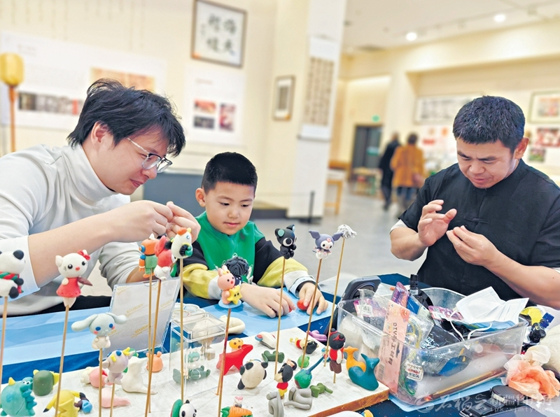 12月1日,家长带着孩子在乌鲁木齐市博物馆体验面塑制作。□石榴云/新疆日报记者 李雄心摄