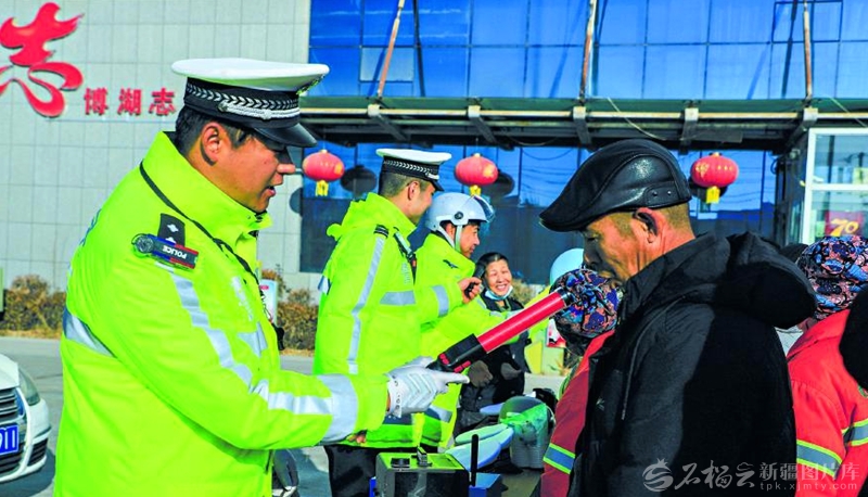 12月1日,民警向市民普及交通安全法律知识。当日,博湖县举行第十四个“全国交通安全日”主题宣传活动,现场该县公安局交通管理大队民警通过情景模拟、游戏互动等形式的宣传,增强群众交通安全意识。 □董柱岑摄