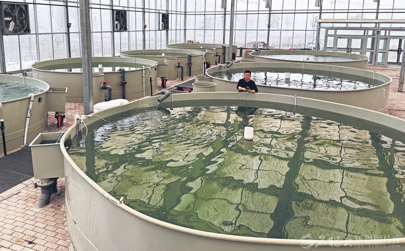 11月30日,工作人员在温泉县森泽现代化渔业有限责任公司养殖基地查看鱼苗生长情况。