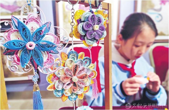 11月28日,参展学生展示衍纸技艺。当日,“美润天山 艺启未来”乌鲁木齐高新技术产业开发区(新市区)书画特色学校美育成果展,在新疆当代青少年艺术中心举行。学生创作的儿童画、版画、剪纸、衍纸等400余幅作品参展。□石榴云/新疆日报记者邹懿摄