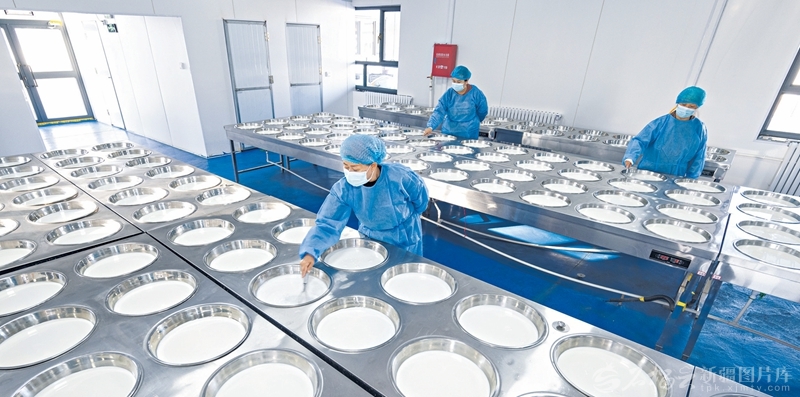 12月3日,工作人员在奇台县香可儿食品加工厂制作奶皮子酸奶。近年来,奇台县依托本地畜牧业优势,大力发展特色优势产业,鼓励村民加工奶制品,扩大增收渠道。□何龙摄