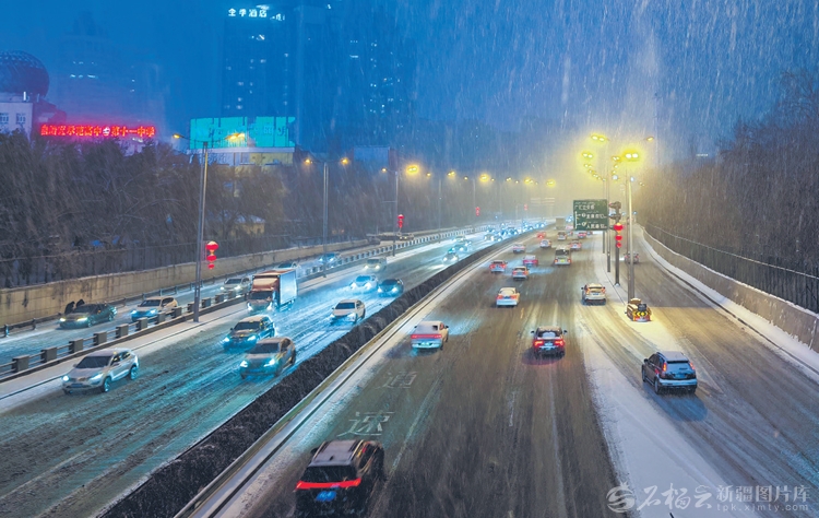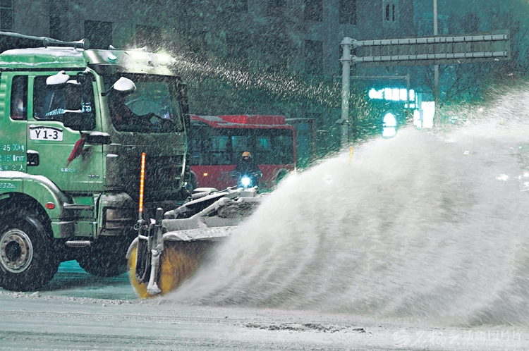 从12月10日晚上开始,一场大雪飘飘洒洒,乌鲁木齐所有的街巷静默在一片纷扬的白色里。天是冷的,路是滑的,可城市并没有睡着——轰鸣声由远及近,是清雪车的滚刷在撕破雪幕;点点橙色在路灯下移动,是扫帚与铁锨在与积雪“较劲”;路口那一抹荧光绿格外扎眼,像立在风雪里的路标。