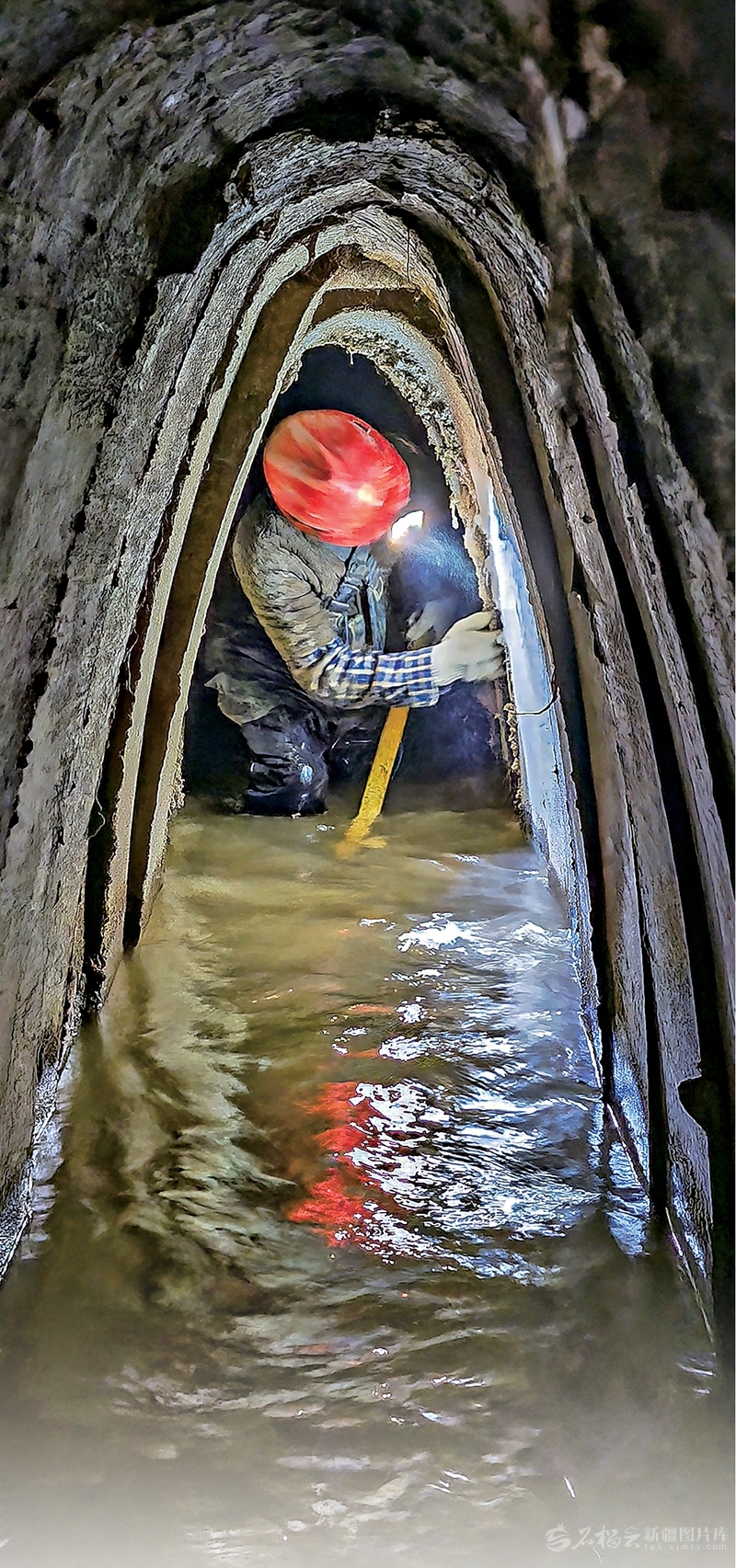12月2日,吐鲁番市高昌区亚尔镇团结坎儿井,匠人木提拉·吐尔逊在暗渠掏捞泥沙。