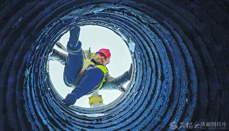 12月2日,匠人在吐鲁番市高昌区亚尔镇团结坎儿井加固竖井。