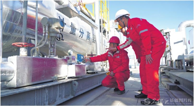 近日,工作人员在中国石油天然气股份有限公司吐哈油田分公司三塘湖油田牛圈湖东区CCUS项目现场对各类运行设备开展调试作业,全力保障项目冬季安全稳定运行。□郭子毅摄