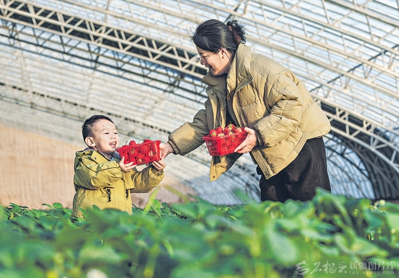 12月20日,游客在温室大棚里采摘草莓。入冬以来,库车市乌恰镇乌恰三村种植的大棚草莓陆续成熟上市,“草莓采摘游”活动成为当地群众周末休闲的新选择。□袁欢欢摄