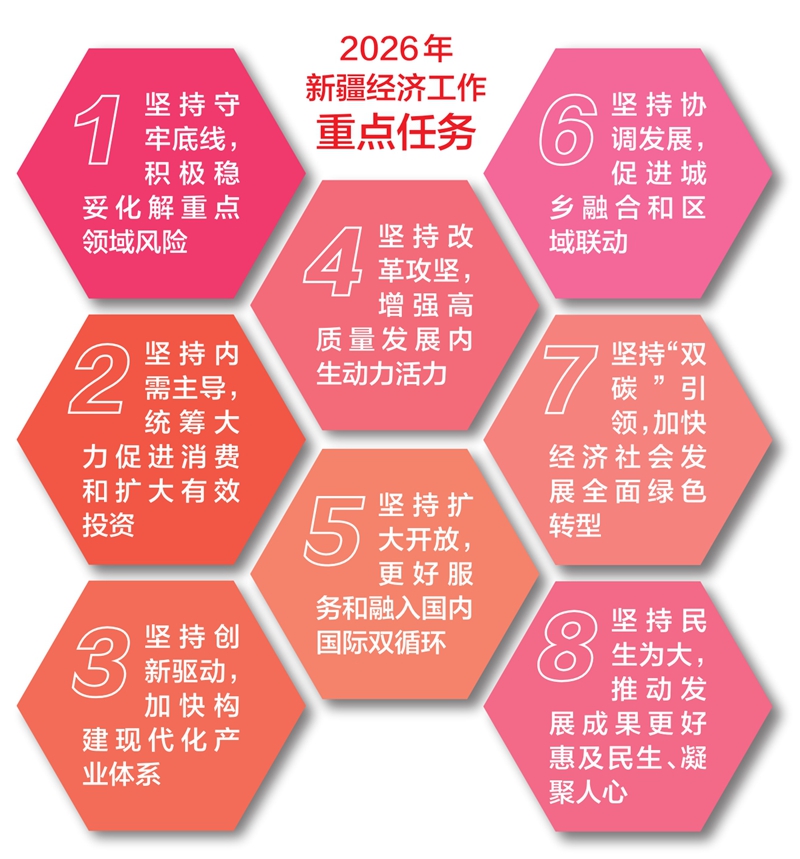 标定航向才能扬帆远航。会议从八个方面作出部署,构建起新一年新疆高质量发展施工图。