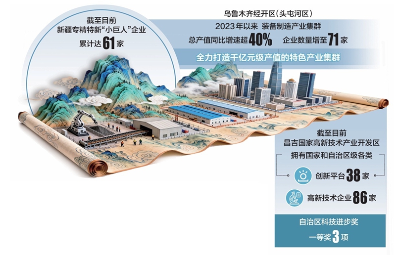 乌鲁木齐经开区(头屯河区)还构建起“整机+零部件”协同发展生态。2023年以来,园区装备制造产业集群总产值同比增速超40%,企业数量增至71家,成为区域工业增长的核心引擎。目前,乌鲁木齐经开区(头屯河区)正锚定发展目标,全力打造装备制造、有色金属及纺织、食品饮料等千亿元级产值的特色产业集群。