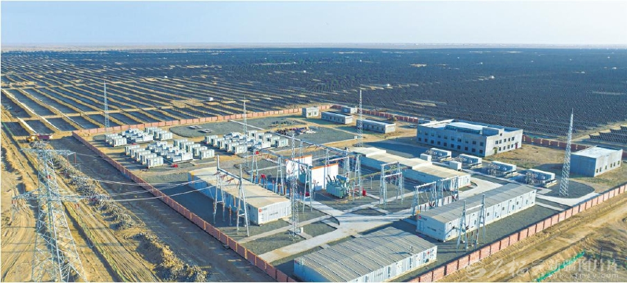 深能尉犁县45万千瓦光火储一体化项目外景(12月24日无人机摄)。当日,深能尉犁县45万千瓦光火储一体化项目并网发电。该项目每年可稳定输出清洁电能8.5亿千瓦时,具有显著的生态效益。 □汪志鹏摄