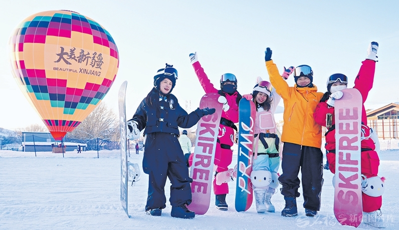 12月24日,雪友在阿勒泰将军山国际滑雪度假区合影。阿勒泰得天独厚的冰雪资源,让冬季旅游热度持续攀升,成为全国雪友心中的打卡胜地。□张福新摄