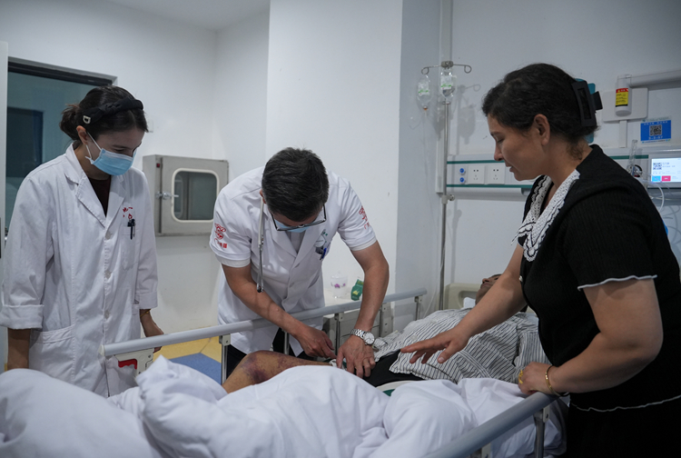 在南疆首个国家区域医疗中心——中山大学附属喀什医院(国家感染性疾病区域医疗中心),崭新的病房、先进的设备、医术精湛的广东医生护佑着各族群众健康。这里已成为“立足南疆,辐射‘一带一路’”的医疗高地。以该中心为龙头,“广东名医进疆工程”有条不紊推进,“粤新光明行”“粤新消结行”等面向基层的免费治疗手术持续开展。