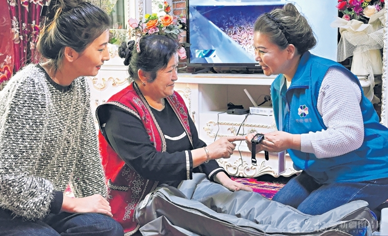 “家庭养老床位建设的核心,是让科技赋能养老,让老年人足不出户就能享受专业便捷的养老服务。”巴音郭楞蒙古自治州民政局党组书记、副局长徐伟红介绍,在推进家庭养老床位建设过程中,当地为符合条件的老年人家庭统一配备智能腕表、紧急呼叫器、智能监控摄像头等基础智能设备。老年人如有需求,只需按下紧急呼叫器,即可一键连通智慧养老服务中心后台;后台会第一时间向绑定亲属或村(社区)工作人员的电话推送预警信息,同步播报老人的求助位置,助力快速响应施救。每个服务平台最多可绑定4部电话,与家人同住的老年人可绑定亲属号码,独居老年人则绑定村(社区)工作人员电话,由此构建起“实时监测—自动预警—联动响应”的闭环服务体系。