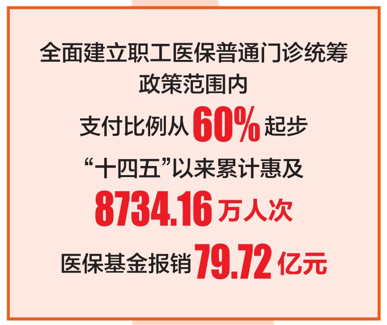 自治区医保局紧盯群众健康需求,全方位提升待遇保障水平,从住院到门诊、从常见病到重特大疾病,织密全生命周期医疗保障网。住院保障水平持续巩固,职工医保和居民医保政策范围内住院费用基金支付比例分别稳定在80%和70%以上,有效保障参保群众住院医疗需求。门诊保障改革实现突破,全面建立职工医保普通门诊统筹,政策范围内支付比例从60%起步,“十四五”以来累计惠及8734.16万人次,医保基金报销79.72亿元;个人账户共济范围扩大至参保人员近亲属和结亲户,实现“疆内外”共济全覆盖,注册人数破26万人,全面实现转账、消费、共济缴费功能,此项工作走在全国前列并获国家医保局肯定。