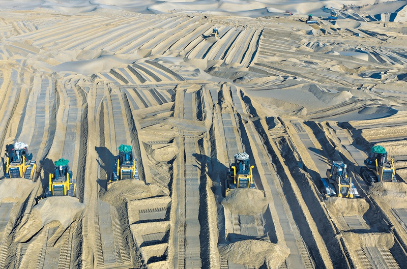 寒冬时节,尽管塔克拉玛干沙漠南缘的墨玉县气温跌破零摄氏度,这里却涌动着治沙攻坚的热潮。数十台推土机轰鸣作业,推筑阻沙堤、平整沙丘,本地农户忙着收割加工芦苇、铺设草方格,冬季治沙工程高效推进。□新华社记者丁磊摄