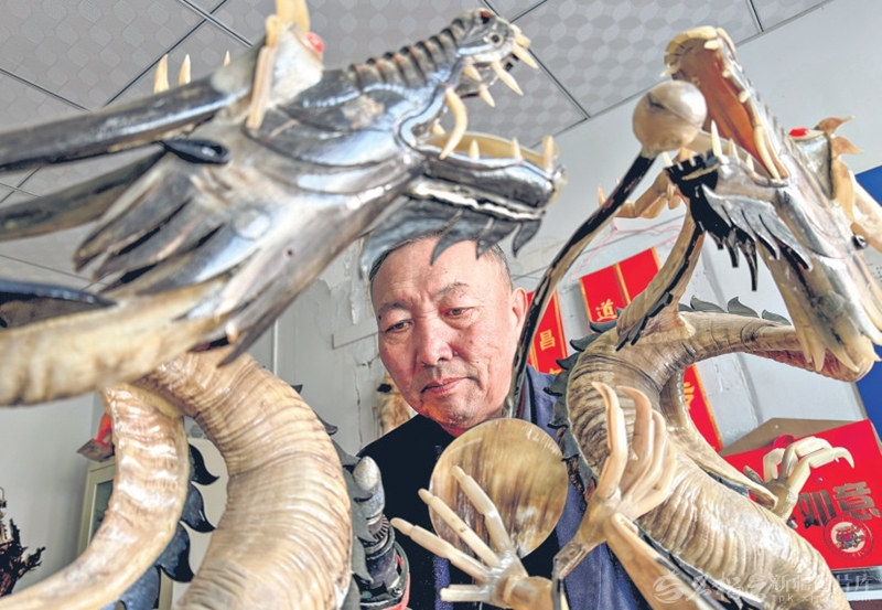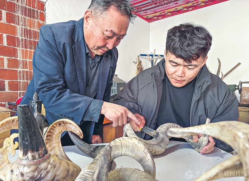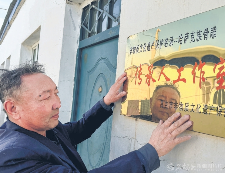 昌吉市阿什里哈萨克族乡阿什里村,自治区级非物质文化遗产哈萨克族骨雕项目代表性传承人对山·努尔夏尔甫的工作室里,各种栩栩如生的骨雕作品错落摆放,尽显独特韵味。