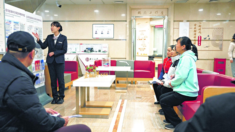 1月9日,中国银行新疆区分行营业部“新时代金石榴消保先锋”枫桥工作站工作人员向用户细致讲解金融知识。 □王茹摄