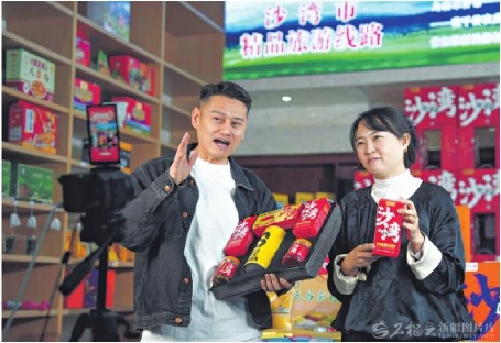 1月21日,沙湾市文旅局党员干部和产业联盟电商人才一起直播销售农特产品。该市推行“党建+电商+产业”模式,整合资源成立农特产品联盟,统一打造“沙湾礼物”品牌,带动集体经济发展和农民增收。 □杨文秀摄