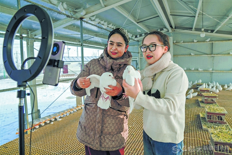 1月19日,乌苏市八十四户乡干部通过直播带货方式帮辖区养殖户销售鸽子。近年来,该市持续组织年轻干部深入基层实践,以提升服务群众、推动发展的本领。□李仁锡摄