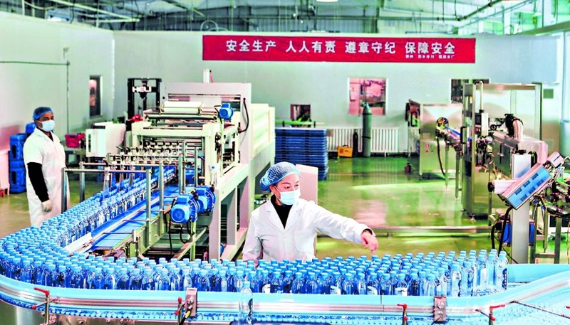 1月22日,工人在博州西水水利建设有限责任公司瓶装水生产车间赶订单。该公司生产的“西水冰川”瓶装水采用天然水源,水质柔滑细腻,目前,公司订单充足,日最大产能达4万瓶,产品销往北京、天津、山东、江苏等地。 □孙明亮摄