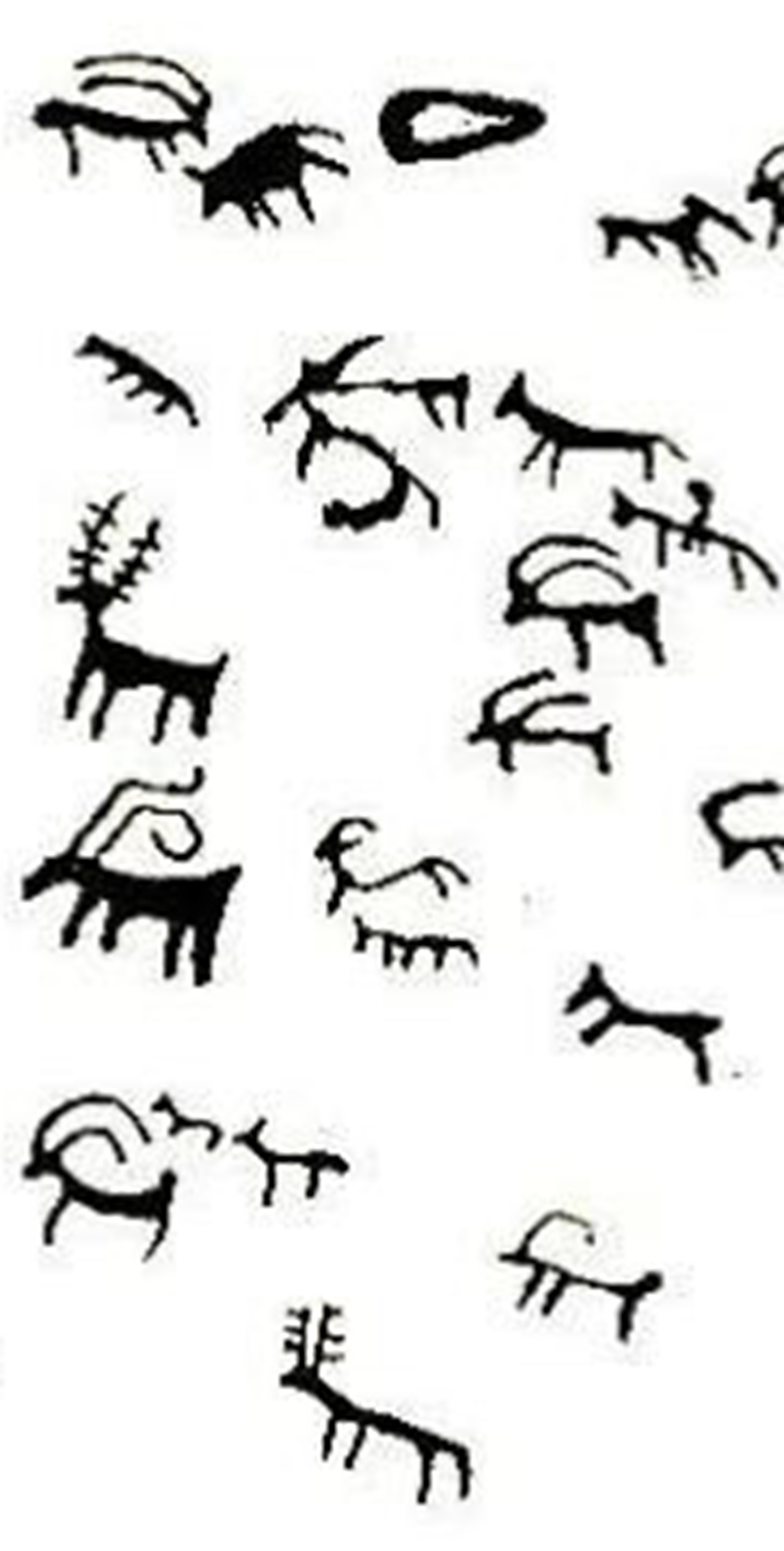 阿勒泰地区素有“千里岩画长廊”的美誉,在其富蕴县杜热乡徐云恰耳岩壁上有大量描绘放牧围猎的岩画,其中一幅描绘了一名骑马牧人与5只北山羊。骑马牧人处于画面右下方,形态极为生动;另一幅岩画呈现的则是一幅牛、马、羊、鹿混合放牧的图景。画面中,牛、马、羊、鹿姿态各异,有的低头啃食青草,有的抬头极目远眺。再如富蕴县喀拉通克乡博塔毛音岩画中的“围猎图”,图上共凿刻9个骑马人、一个徒步猎人、一个有尾饰的男子、一条猎犬、两只鹿、一匹马、一只大骆驼、37只大角羊与一只狼。尤其是9个骑马人的形象,直接证明当时马已被驯化并用于狩猎活动。37只大角羊的存在也暗示了以牧羊为主的放牧经济背景,马在其中可能承担运输、围猎等辅助功能。龙马精神强调“通达”特质,而牧马人借助驯化手段,达成了“人与马在速度及意志层面的高度契合”。岩画里呈现的原始社会初期,人与马和谐共生的场景,表明人类并非以征服者的姿态存在,而是作为引导者与伙伴,携手将马所具备的自然力量,升华成一种服务于群体生存与迁徙的“文明力量”,这似乎亦可被理解为“龙马负图”神话在现实生活中的实践原型。