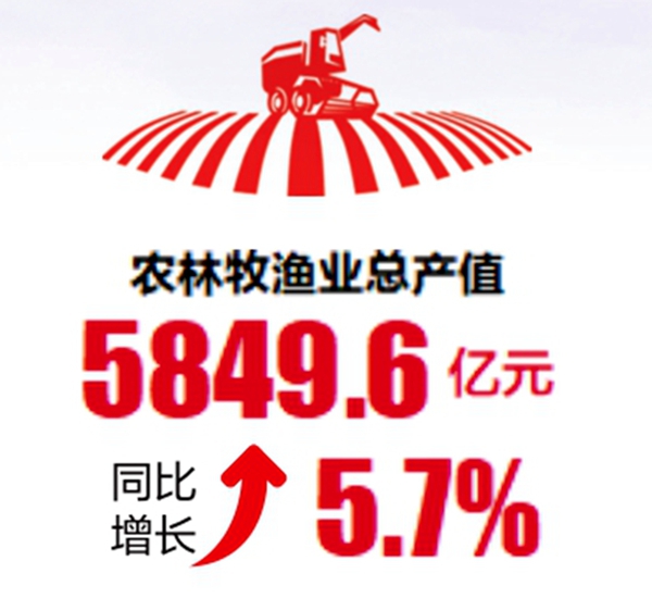本报乌鲁木齐1月30日讯 石榴云/新疆日报记者王亚芸从2025年自治区国民经济运行情况新闻发布会上获悉:2025年,全疆农林牧渔业总产值5849.6亿元,按可比价计算,同比增长5.7%,农业生产形势较好,畜禽出栏稳定增长。